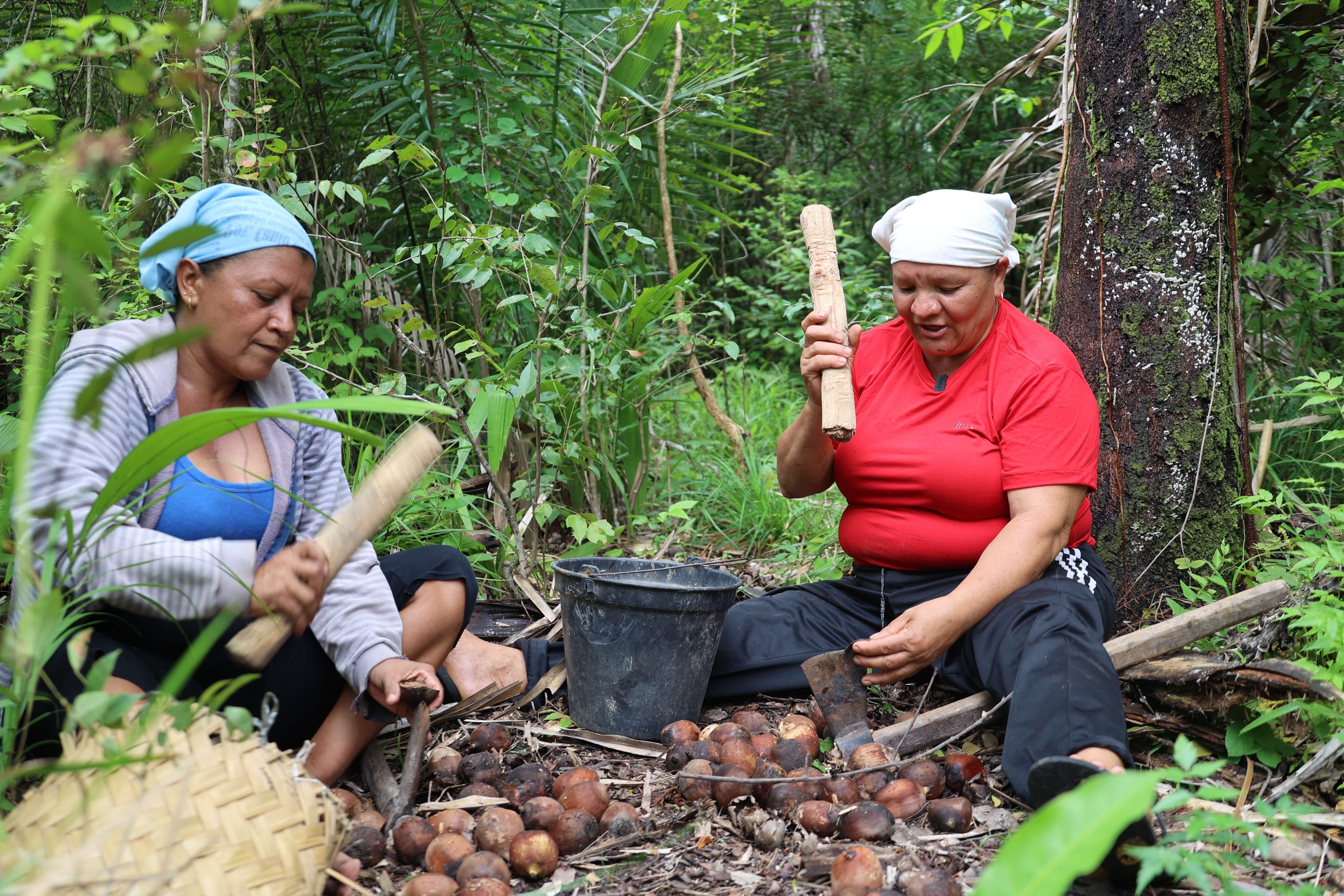 Diese kleinbäuerliche Agroindustrie ist vollständig auf intakte Wälder angewiesen. Die Palmen wachsen zwischen anderen Bäumen, nicht in Monokulturen. Das Ökosystem selbst – Wasser, Böden und Biodiversität – ermöglicht ihre Arbeit. Wenn Land für Soja gerodet wird, verlieren die Frauen nicht nur Einkommen. Sie verlieren ihre Verbindung zu angestammten Territorien und zu einer Arbeit, die ihre Gemeinschaften über Generationen geprägt hat.