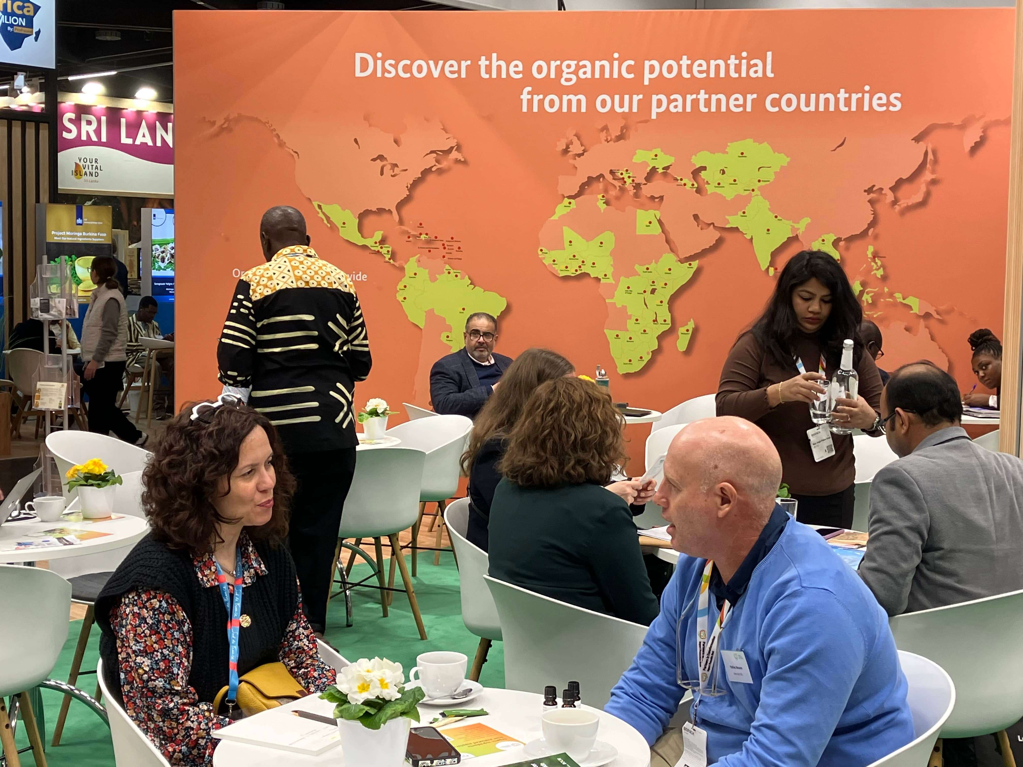 Seit 2015 sind IPD und die GIZ im Auftrag des BMZ auf der BIOFACH mit einem gemeinsamen Stand unter dem Motto "Organic Sourcing for Development" vertreten. Dort bringen sie ausgewählte Exporteure aus Entwicklungs- und Schwellenländern mit deutschen und europäischen Importeuren zusammen. Im Jahr 2025 feiert diese erfolgreiche Zusammenarbeit ihr 10-jähriges Bestehen. Im Laufe der Jahre haben sie über 300 Unternehmen aus den Partnerländern in den europäischen Markt eingeführt. Auch im Februar 2025 haben sie rund 50 innovative Unternehmen aus Lateinamerika, Asien, Afrika und Europa vorgestellt.