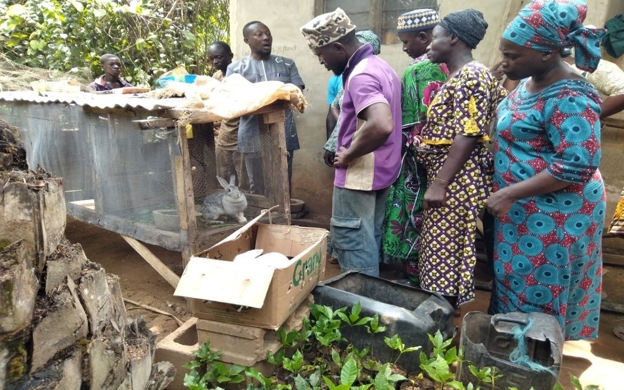Training in der Hasenzucht für Arowojeka-Farmer der Oyegun community, Ibadan Oyo Staat, Nigeria. © FRIN/Titilope Olarewaju