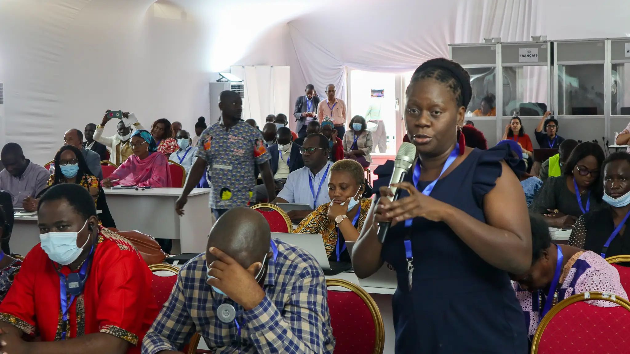 Delegates attentively listen during a session at the UNCCD COP15 conference on May 9, 2022.