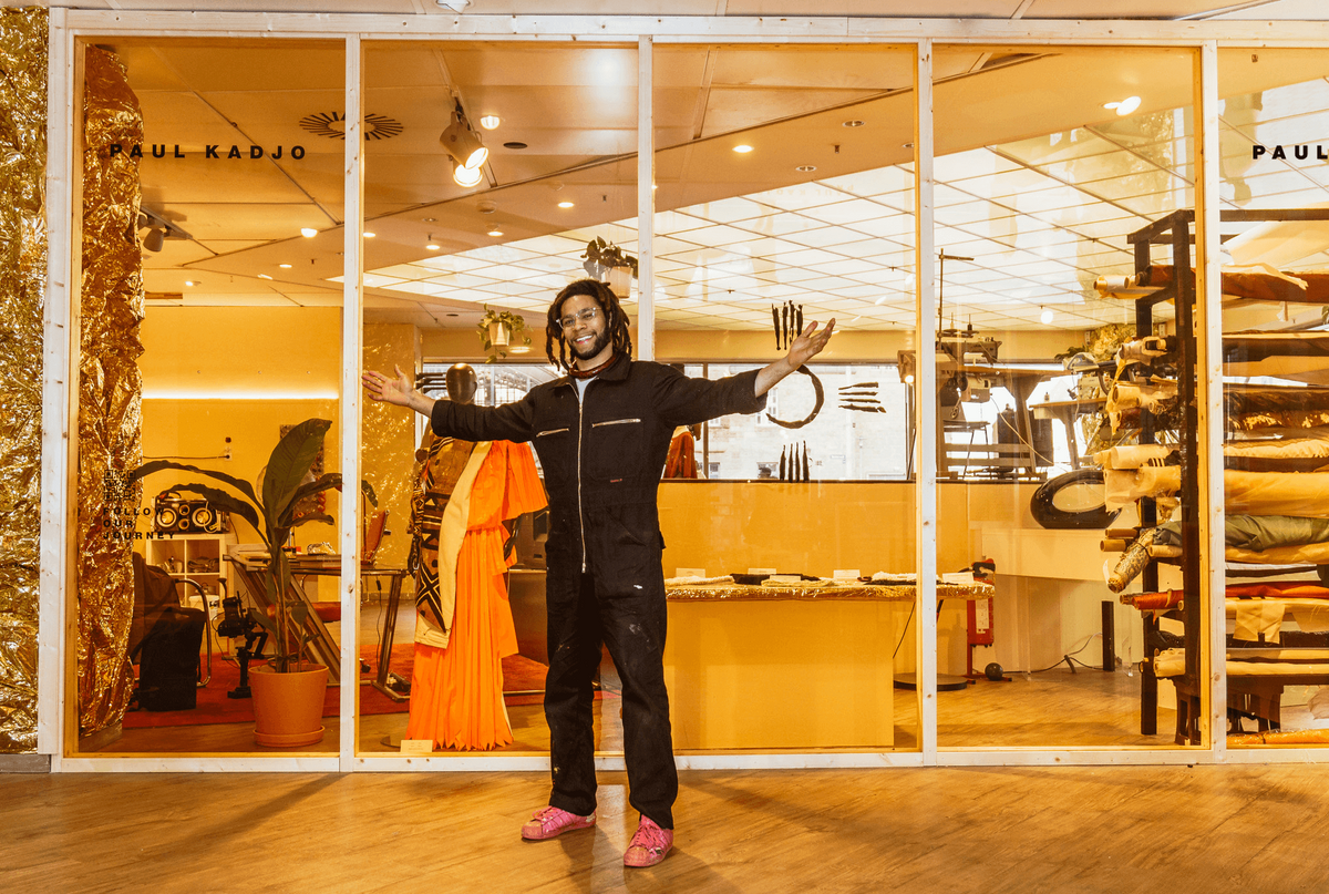 Paul Kadjo is a designer, stylist and founder of the brand bearing his name. Using an upcycling concept, Paul Kadjo produces textiles, accessories and art objects from old clothes, banana fibres and other by-products. Born in Germany and raised in the Ivory Coast, his work aims to reflect a fusion of different cultures and influences. He is a graduate of the AMD Akademie Mode & Design Hamburg and winner of the Best Sustainable Concept Award at Berlin Fashion Week 2021.