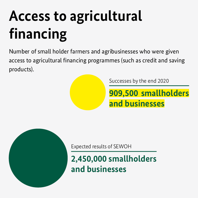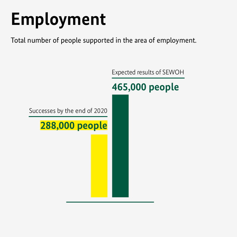 Making success and goals measurable. To do just that, GIZ and KfW have established eight performance indicators that illustrate their many measures and projects within SEWOH. They express the results of SEWOH in numbers and make them visible. *