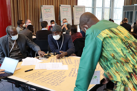 Vom 03.-06. April kamen rund 30 Vertreterinnen und Vertretern bäuerlicher Organisationen, vornehmlich aus afrikanischen Ländern, zusammen und diskutierten ihre Rolle bei der Transformation von Ernährungssystemen. Nach der von Online-Veranstaltungen und digitalem Kennenlernen geprägten Pandemiezeit, konnten die Teilnehmenden zum ersten Mal wieder in den persönlichen Austausch treten und neue Netzwerke schaffen. Die Präsidentinnen und Repräsentanten wichtiger supranationaler Verbände – darunter der World Farmers Organisation (WFO), die 5 regionalen Verbände Afrikas (SACAU, EAFF, ROPPA, UMNAGRI und PROPAC), der Panafrikanische Verband PAFO) sowie viele nationale Verbände afrikanischer Länder und Verbänden aus Europa und Amerika – tauschten sich in Arbeitsgruppen zum Prozess und dem Beteiligungsformat des UN Food System Summit (UN FSS) aus: Wie funktioniert Interessenvertretung in komplexen internationalen Agenden? Wie kann sich die organisierte Landwirtschaft bei der Umsetzung der National Pathways des UN FSS beteiligen? Wie kann die Brücke zwischen Gesellschaft und Politik geschlagen werden? Und wie können bäuerliche Organisationen zu resilienten und nachhaltigen Ernährungssystemen beitragen?