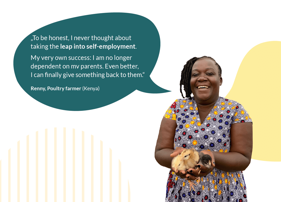 Zusammen mit 500 anderen jungen Menschen profitierte Febelsa von einer Start-up-Unterstützung an einer nahegelegenen Landwirtschaftsschule, an der sie einen vierwöchigen Kurs absolvierte. „Ich habe gelernt, wie man Hühner züchtet, Eier produziert und sie dann gewinnbringend verkauft“, erklärt sie. Sie erwarb auch betriebswirtschaftliche Fähigkeiten und erhielt Startkapital von der lokalen NGO AfricaWorks.