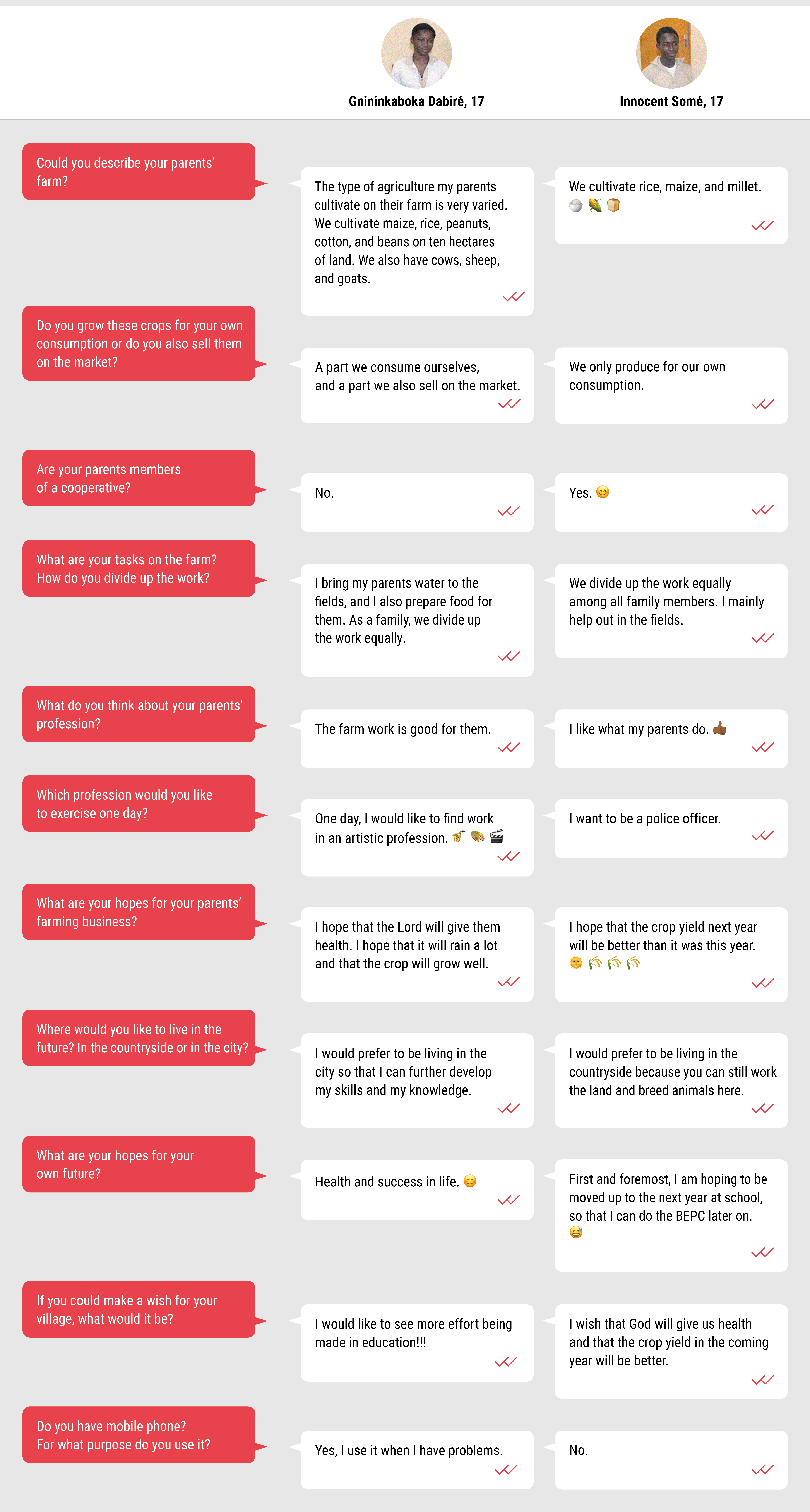Later on you want to become a farmer yourself, or would you prefer to take up another profession? Two young people from Burkina-Faso talked to representatives of the Dreyer Foundation about their parents' farms, the profession of farmer and their own plans for the future.